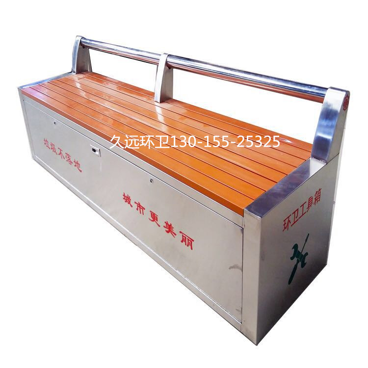 環(huán)衛工具箱:也叫保潔員工具箱,環(huán)衛工具椅,保潔員休息座椅,市政保潔箱等。工具箱常用尺寸為:長(cháng)2400*寬500*高550mm,也可以做成2米,2.4米,2.7米等,寬度和高度也可以定做,滿(mǎn)足不同客戶(hù)、不同場(chǎng)所的使用要求。